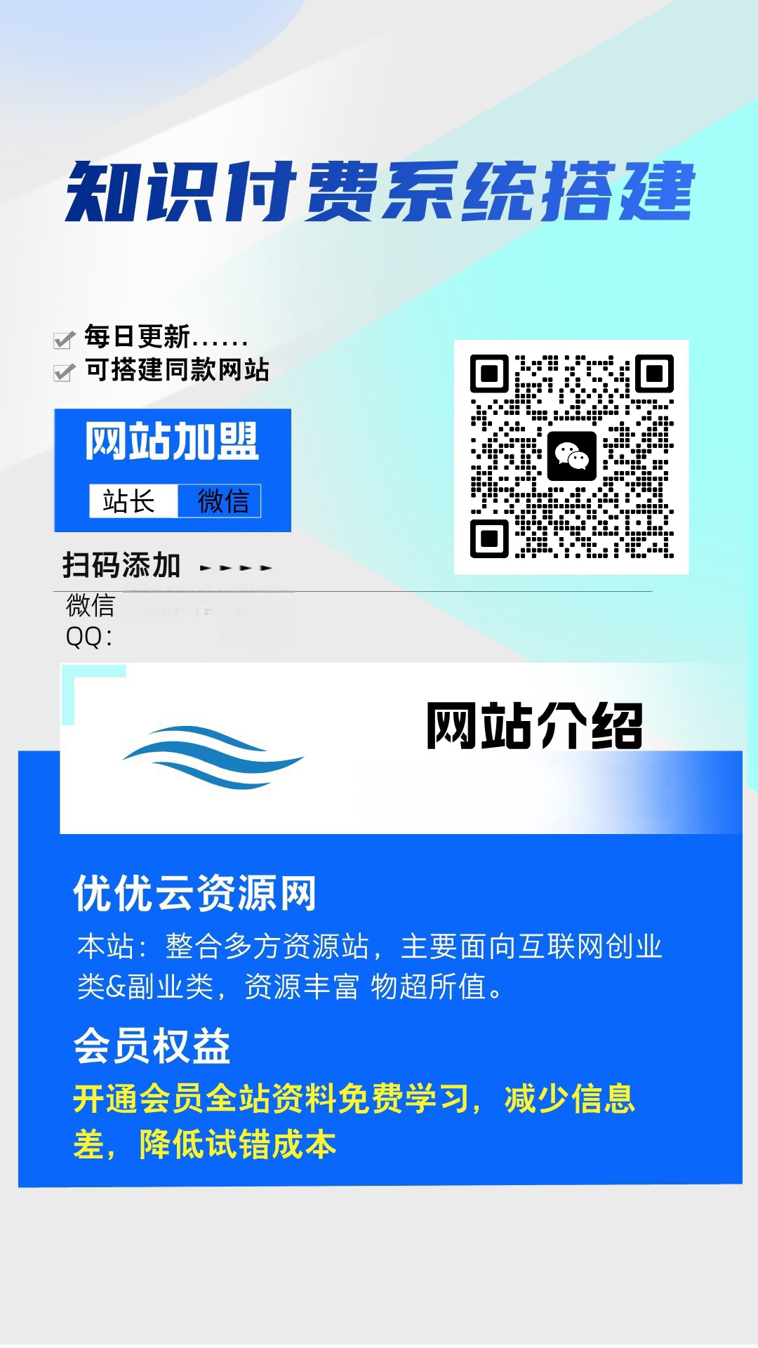 加盟基于易网创,加盟搭建同款知识付费资源网站,实现长期稳定被动收入~